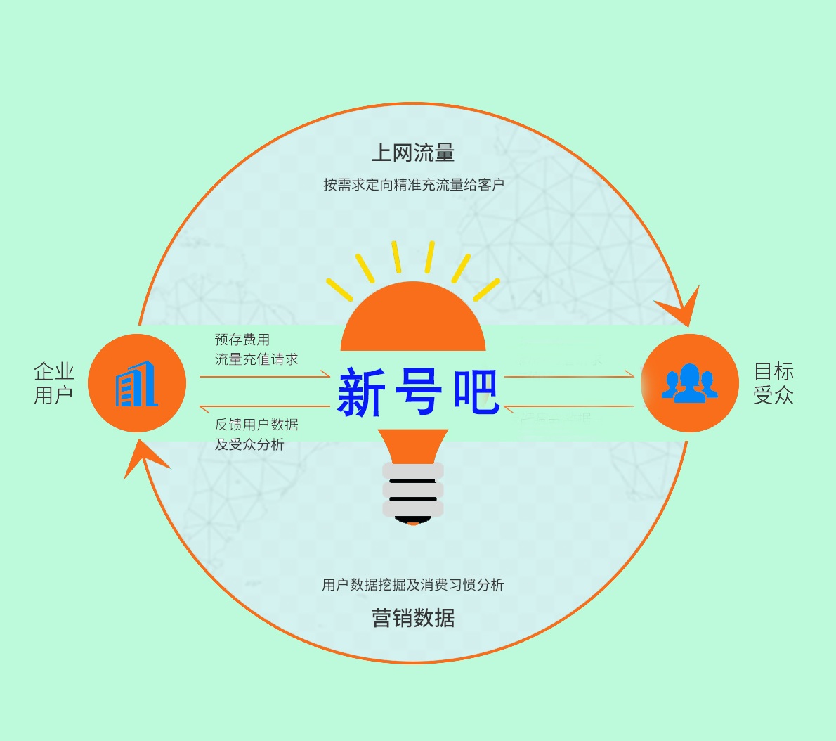 公司创立以来一直从事通讯行业的工作,累计了多年行业经验。我们主要专注于整合移动、联通、电信三大运营商数据流量资源,融合数百万移动互联网合作伙伴,实现客户的流量定制、流量赠送、流量兑换和流量交易等业务体系的业务经营(注:涉及到的流量均为移动、联通、电信三大运营商提供)。